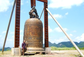 新バイディン寺の鐘楼には重さ36トンものつり鐘があり、ベトナムで最も大きな銅製の鐘とされています。羅漢像が置かれた回廊に沿って行くと観世音殿や法主殿に着きます。ここにはベトナムの最大とされる千手千眼観音像があります。中部ダラット市の観光客ブー・アイン・クァン( Vu Anh Quan) さんは次のように語りました。
