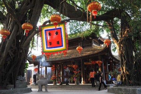 神社の門をくぐり抜けると神や仏の世界に迷い込んだような落ち着いた空間に入ります。神社のすぐ前には茂っている老木が林立し、荘厳さを増しています。観光ガイドグェン・ティ・リェン( Nguyen Thi Lien) さんは次のように語りました。