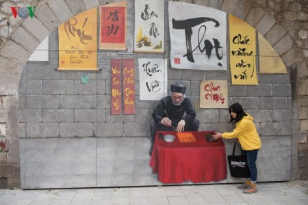 フンフン壁画の通りは撮影スポットであるだけでなく、スケッチや民間遊戯が行われる場所としても知られています。これは歴史と現代芸術を結合させる場所となっています。ハノイ市ドンダ地区に住むグェン・タイン・トゥン( Nguyen Thanh Tung) さんは次のように語っています。