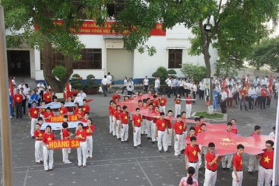15日午前、ハノイで縫製総公社10号は旗集めセレモニーと集会を開き、海と島に向ける気持ちと中国の違法な行動への反対を示しています。