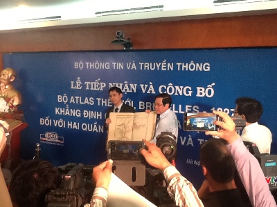 13日、ハノイで、情報通信省はアトラス世界地図帳ブリュッセル1827年版の受領式を行いました。この世界地図帳はフランスの有名な地質学者フィリッ プ・ファンデルマーレンが製作したもので、1827年に、出版され、ホアンサとチュオンサ両群島に対するベトナムの争う余地のない主権を立証しています。