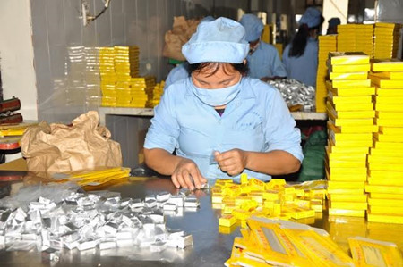 北部ハイズオン省にはタインハ県のライチ、ケサット村のライスペーパーなど多くの特産品がある地方として知られていますが、最も有名なのは緑豆菓子という意味のバイン・ダウ・サイン です。これは緑豆を粉にして、砂糖、植物油を混ぜたものです。
