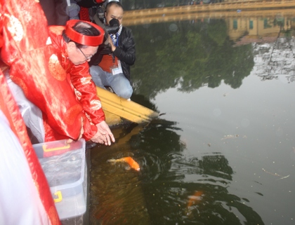 毎年旧暦の12月23日はベトナム人の信仰に基づき、カマドの神様が天にのぼって、その家の一年間の状況を報告する日となっています。今年は新暦の1月16日がこの日ですが、人々は、カマドの神様をまつるお供え物を買いに行きます。そのお供え物とは3匹の小ぶりの赤い
