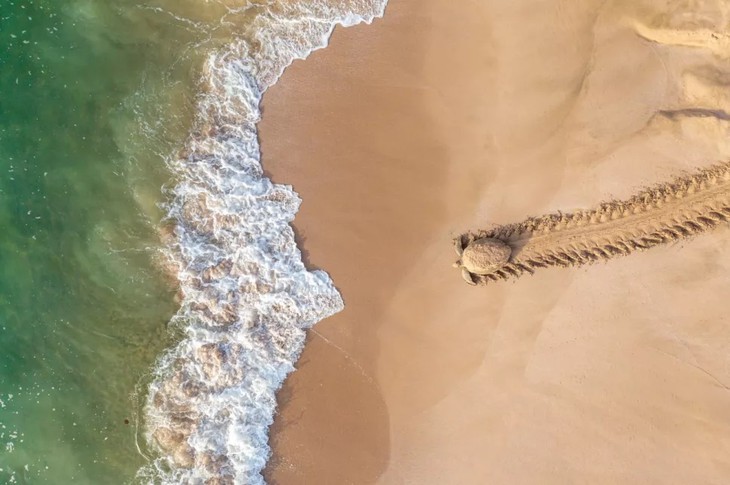 | 「野生動物」部門の優勝作品は、オマーン人写真家Qasim Al Farsi氏が撮影したオマーンの海で産卵を終えた海亀が戻る様子を捉えた「Back to Adventure」。 |