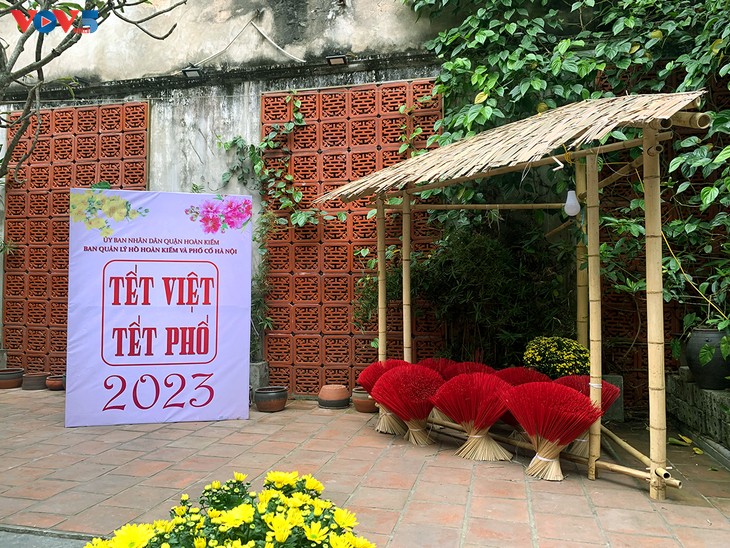 | ダオ・ズイ・トゥー通り50番地にある旧市街文化交流センターでの猫年を祝う展示会 |