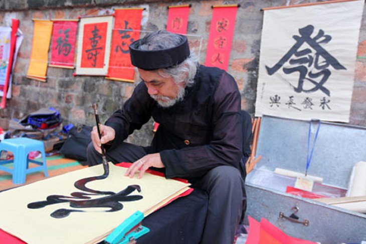 テトに書道家が道端で書を仕上げる姿は昔からテトのお馴染みの光景となっています。それぞれの作品は書道家一人一人の心や創造性が示されていると言えます。また、書道家は書をお願いした人の気持を理解しなければなりません。書道家グエン・タイン・トゥンさんは次のように語りました。