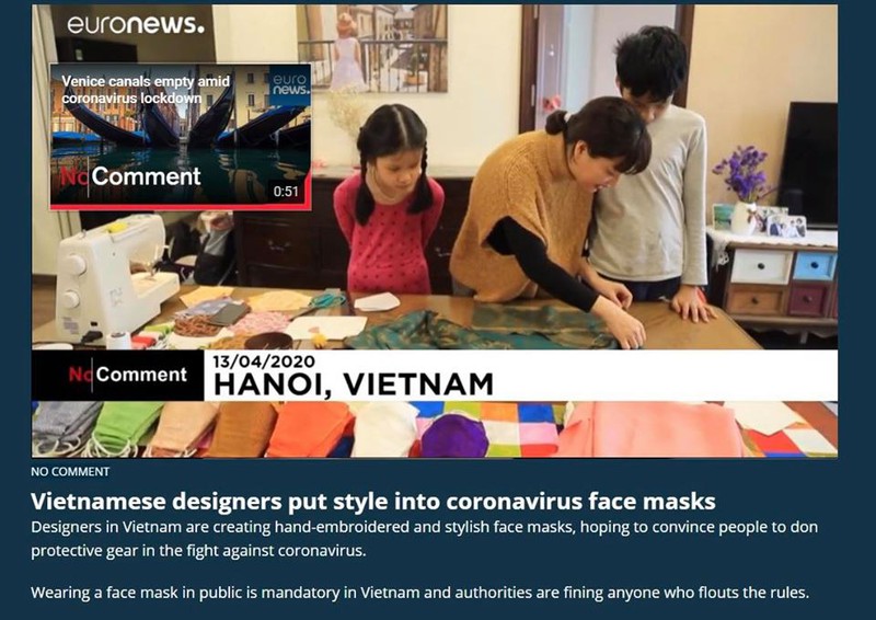 (VOVWORLD) - 最近、外国のメディアが新型コロナウイルスとの闘うため、多くの人々がマスクをかけることに興味を持つようになったこと、その中で、ベトナムのファッションデザイナーが作った特別のマスクについて伝えました。