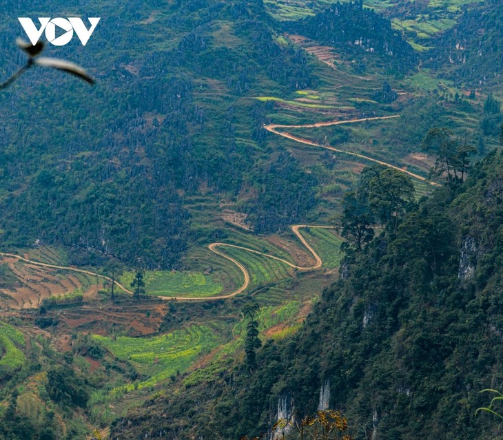 | 村へと続く曲線的な山道、独特の地形を形づくる景観(写真:CTV Ngô Hải/VOV) |