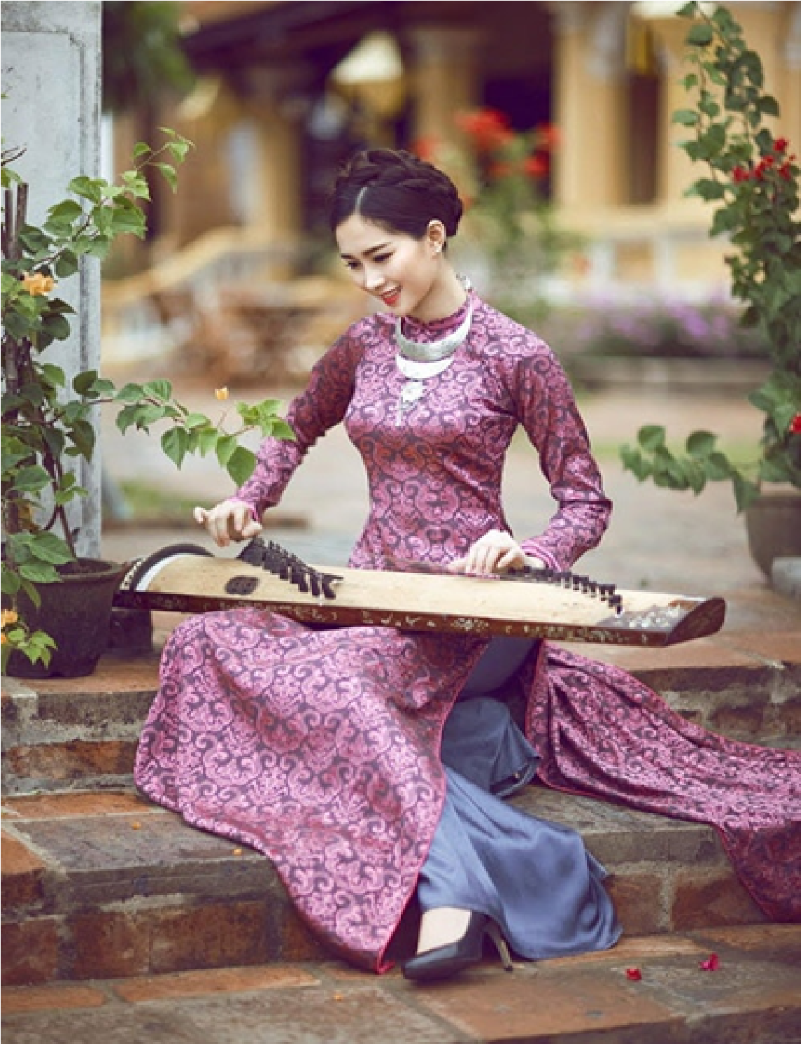 校庭で、アオザイを着ているあなたはまるでハトの翼のよう