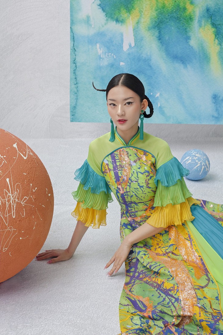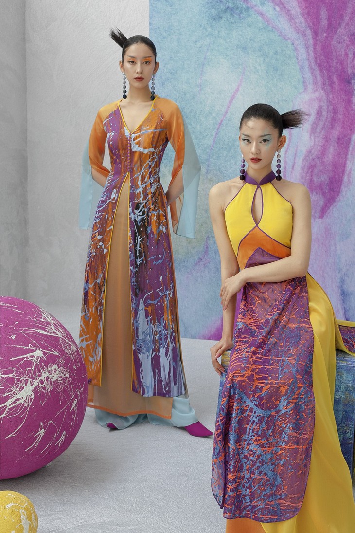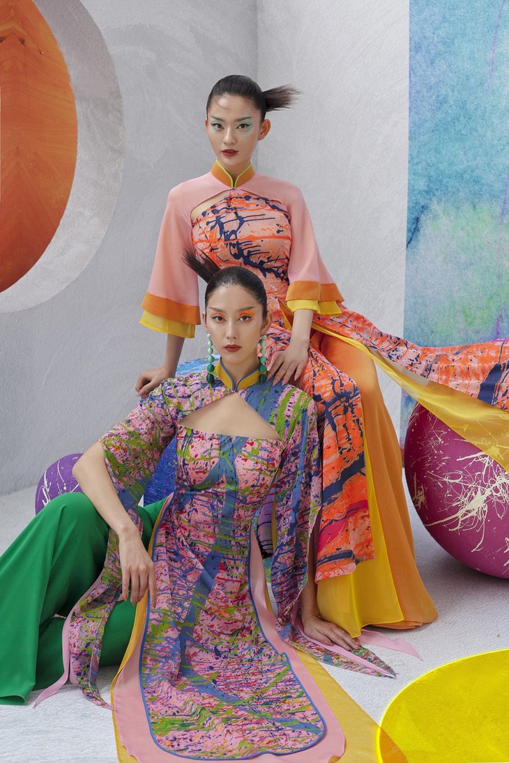 | タイさんが画家トゥ・チャンさんと協力し、アオザイのコレクションを作る |