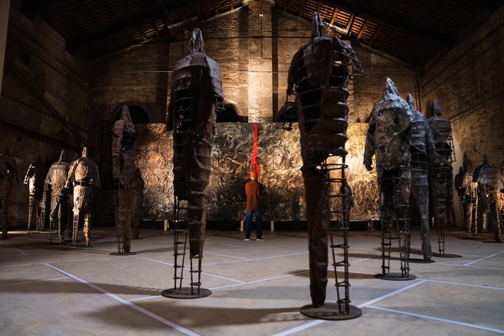 | 非人間化された労働者を代表する絵画と鉄の彫刻 |