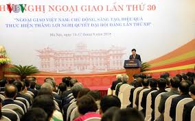 この3年間に、ベトナムの外交活動は、多くの重要な成果を収めており、平和で安定した環境を維持し、祖国の建設防衛事業に有利な条件を作り出してきました。しかし、今後も、ベトナムの外交部門は、二国間と多国間の関係において新たな地位の構築をする必要があると指摘されています。特に、地域における更なる強い発言力とより積極的な対外的な立場を示しなければなりません。同時に、外交部門は、独立・自主・平和・協力・発展、全方位外交、国際への主体的かつ積極的な参入、国家と民族の為の外交路線を実現し続けることになります。さらに、外交部門は祖国の建設と防衛事業のために、有利でかつ平和で安定した環境を維持すると同時に、国際法に従って、独立、主権、及び利益を断固として保護する方針です。