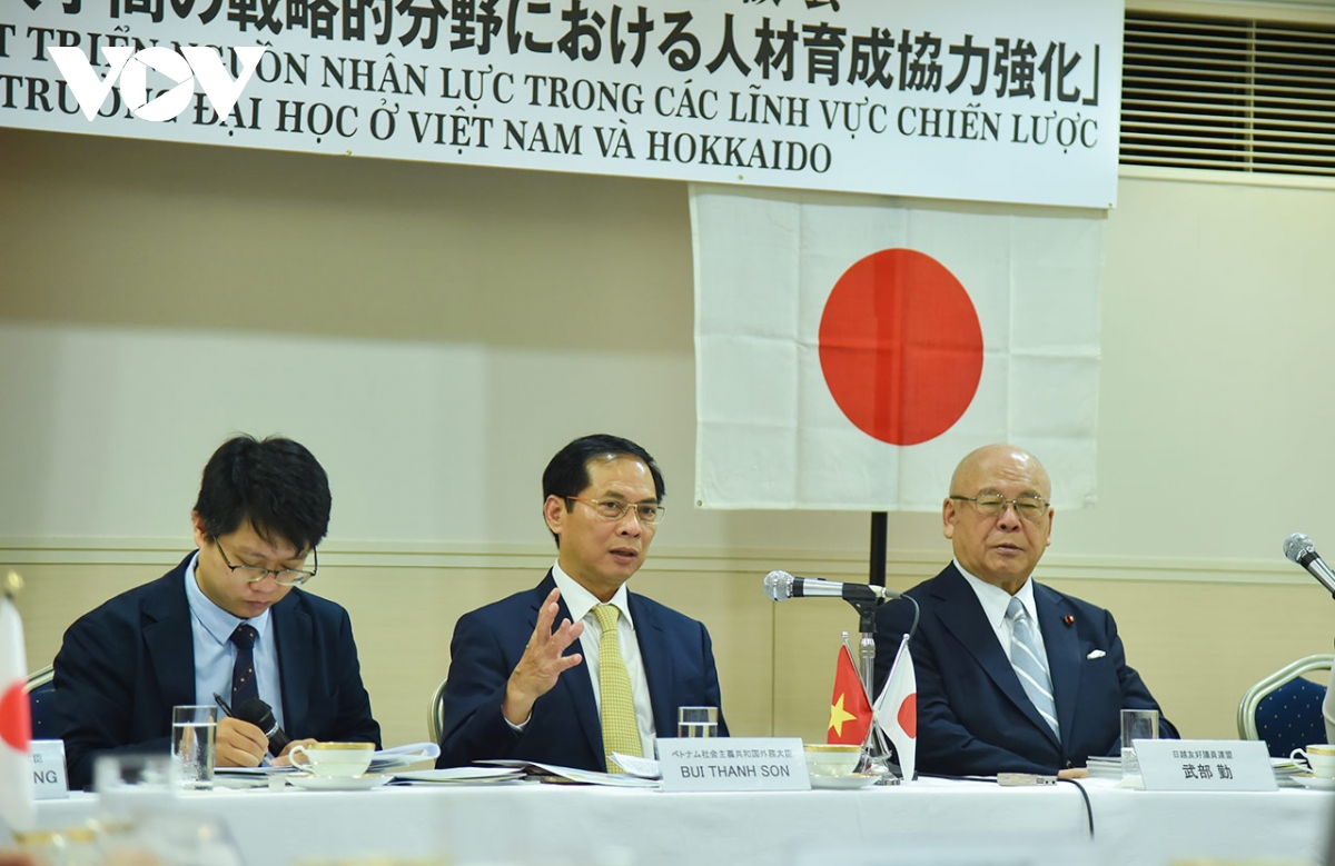 ソン外相は座談会で、人材育成、特に高度人材の育成が両国間の新世代ODA協力の重点分野の一つであると強調しました。また、日本がベトナムの教育分野における最大の援助国の一つであることや、ベトナムが2003年に中学校、2019年に小学校で世界に先駆けて日本語教育を正式に導入したことを紹介しました。現在、4万3000人以上のベトナム人留学生が日本で学んでおり、これが両国の社会経済発展と相互理解を深める重要な役割を果たしていると述べました。