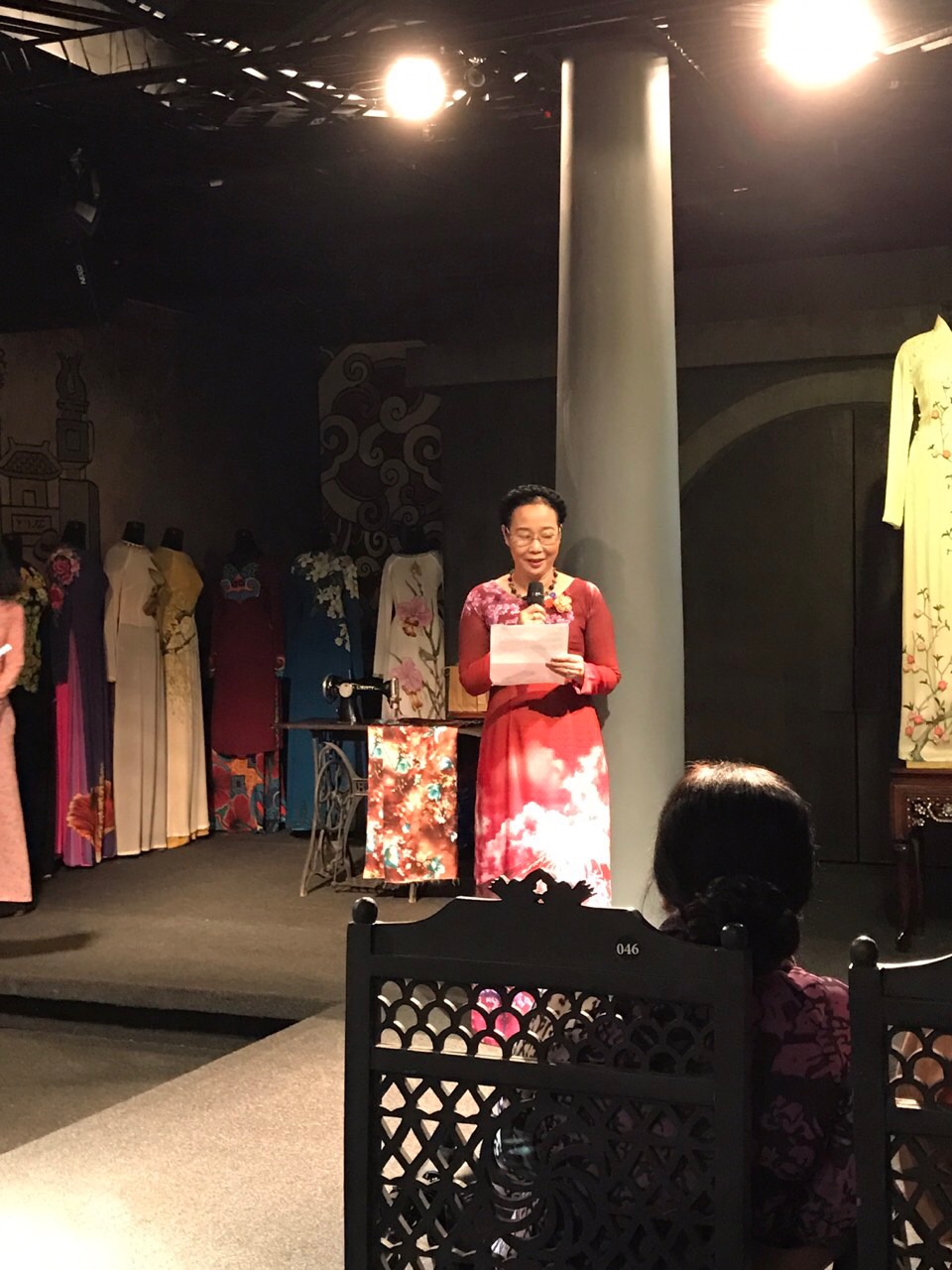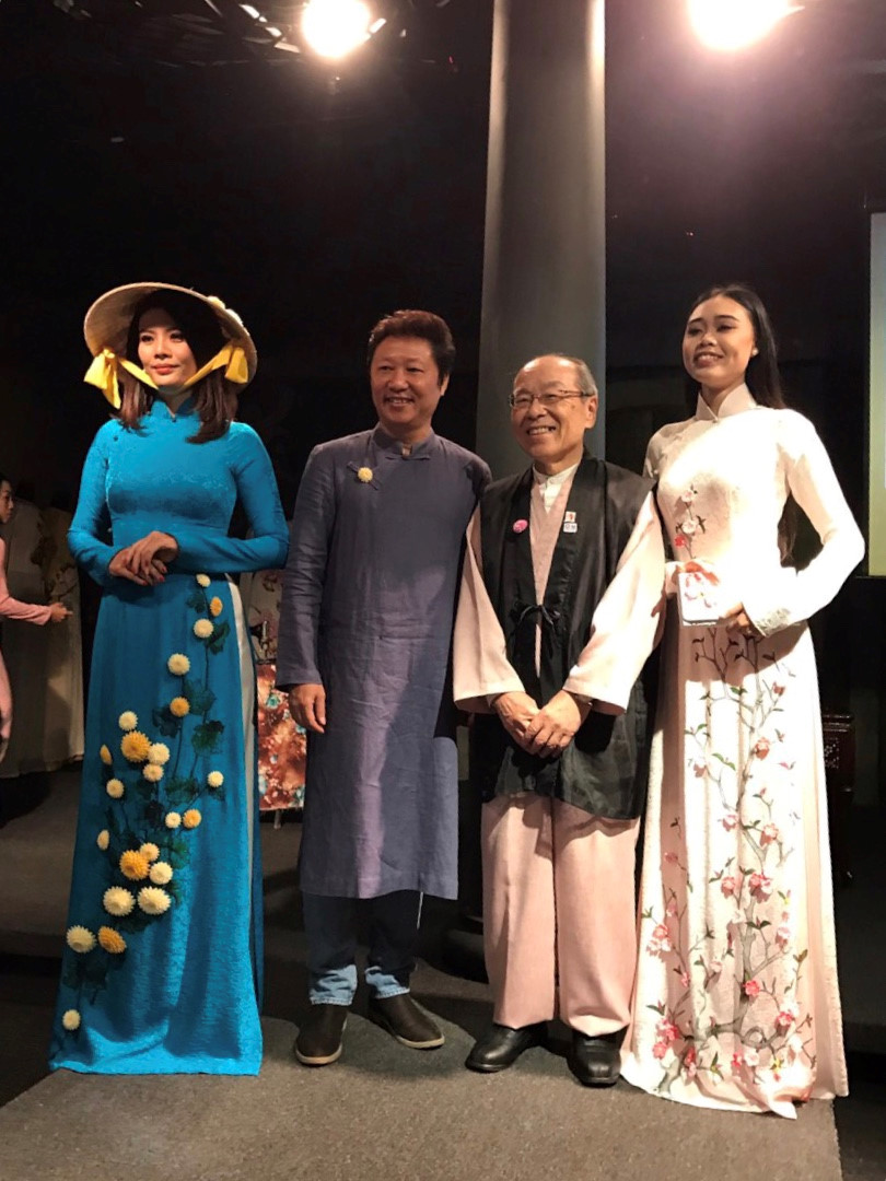 「アオザイとつまみ細工」と題するこのイベントは両国国交樹立45周年を記念する活動のひとつであり、日本の伝統的なつまみ細工をベトナムの民族衣装アオザイに使用したデザイナー シー・ホアンさんの取り組みを紹介するためのものです。