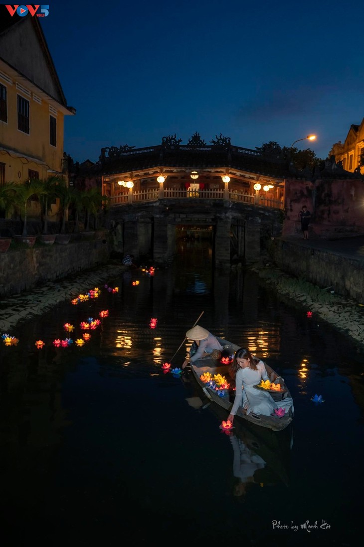 来遠橋(日本橋)の近くで灯籠を流す(写真:Minh Hải) |
