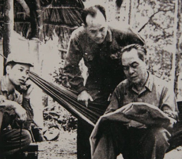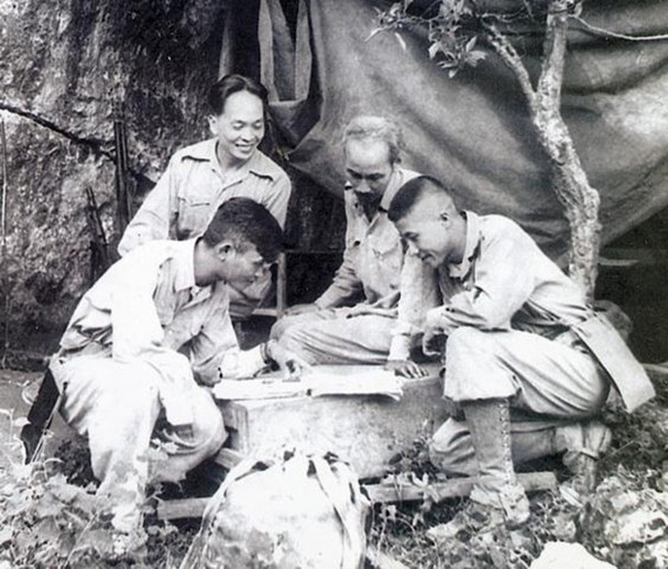| 1950年に行われた「ビエンゾイ(Bien gioi、国境)」作戦を指揮しているホーチミン主席とザップ将軍 |