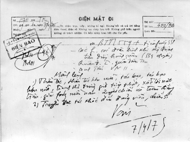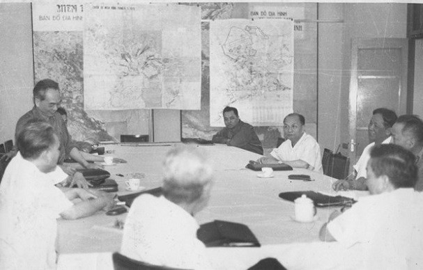 | 1975年のホーチミン作戦の状況を見守ったザップ将軍と将校ら |