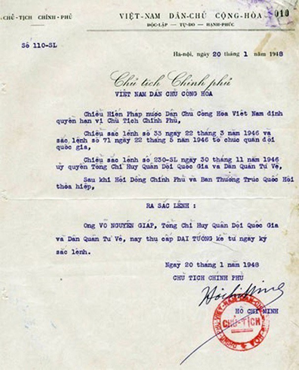 | 37歳になった1948年にベトナム初の大将に任命されたザップ氏 |