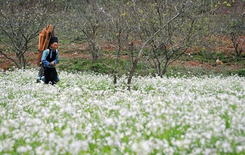 春がやってくると、モクチャウ高原に桃の花が咲きだします。そして、モクチャウ高原の小道には舞い散った桃色の桃の花びらでピンクに染まりす。そして、旧暦の2月になると、モクチャウ高原には白いスモモの花が咲き、ロマンチックな風景をかもし出します。モクチャウ高原のスモモが咲く期間は2,3週間しかありません。モクチャウ高原のスモモの花を眺めたことがあるハノイから行った観光客グェン・キ( Nguyen Ky)さんは次のように語りました。