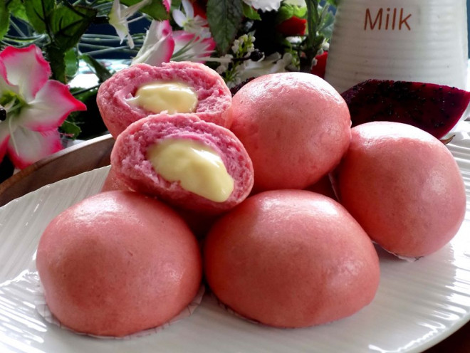練乳あんを包んだドラゴンフルーツの饅頭(写真提供:インターネット) |