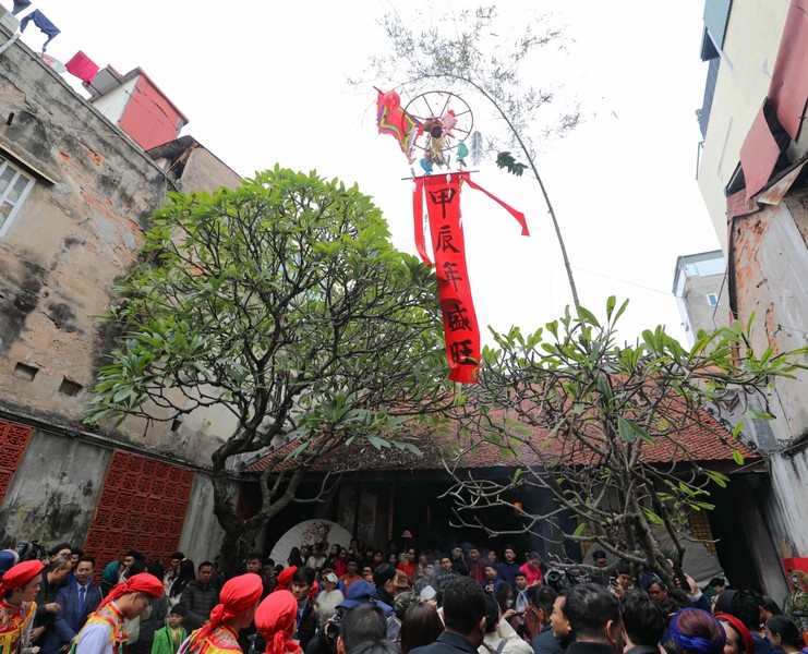 悪魔を追い払うため「ネウ」という木を立てる儀式の再現=Thanh Tùng/TTXVN