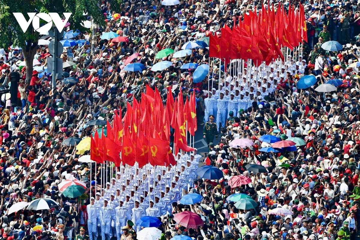 数万人の市民が沿道に立ち並び、式典の行進を見守る(写真:VOV.VN、VOV-TP.HCM) |