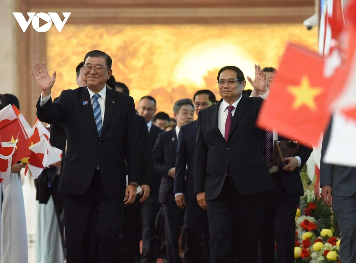 ベトナムと日本の両首相が会談室に入る様子(写真:Lại Hoa/VOV) |