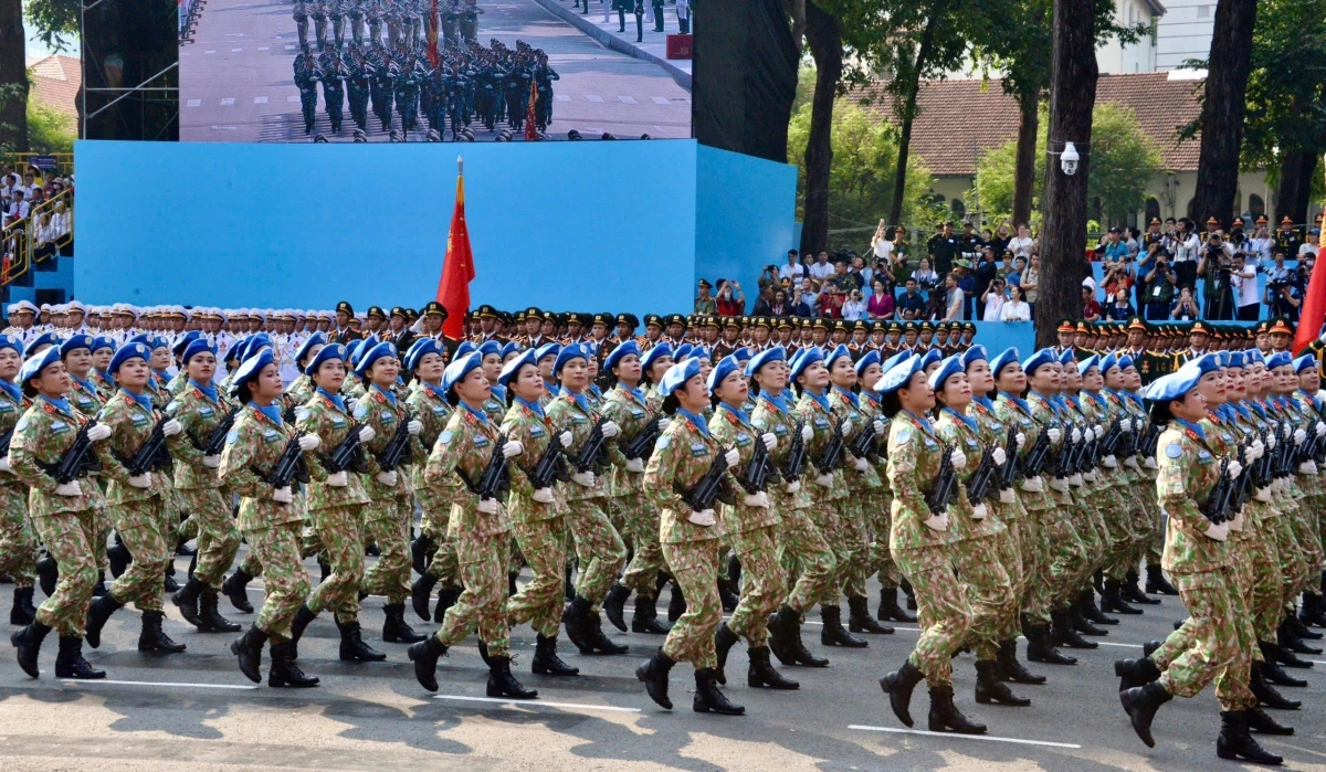 南部解放・国家統一50周年記念式典での軍事パレード部隊の一団(写真:Văn Hiếu/VOV) |