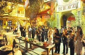 「旧暦の1月15日にお寺に行く時、持参する供え物は人々によって違いますが、欠かせないものは線香、果物、花です。その他、お寺の参拝者は新年の素晴らしい祈りを述べます。」