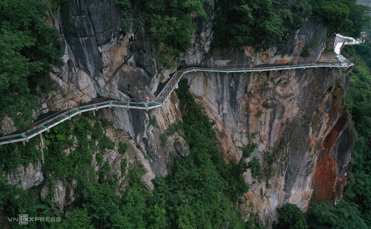 バクロン橋では崖を回るガラスブリッジの区間は290メートルにのぼっています。橋のふもとには鍾乳洞があり、中には、美しい鍾乳石があります。観光客の話をお聞きください。