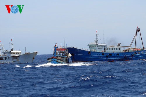 「中国側の石油リグから5海里ないし7海里離れる海域で、中国の船舶は集まり、5隻から10隻組を作り、ベトナムの船舶を包囲し放水しました。中国船舶は大型で、ベトナム領海主権保護を担当するベトナムの護衛船に意図的にぶつかるほか、ベトナム漁船を脅かす行為も行いました。しかし、ベトナム漁船は自国の海域で漁獲活動を続けています」