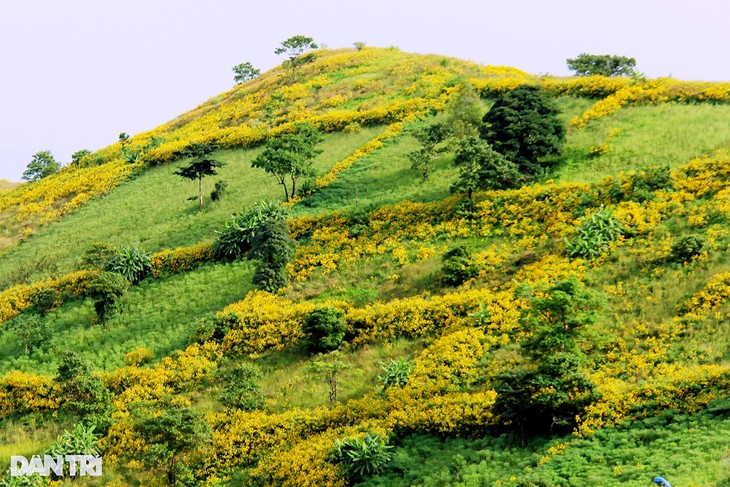 | チュダンヤ火山への道の両側には、鮮やかな黄色の野生のひまわりが生息し、多くの観光客の注目を集める(写真:dantri.com.vn) |