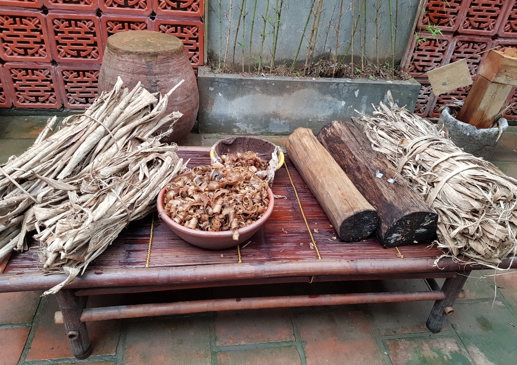 ゾー紙の製造は全て手作業で行われ、植物を原料とし、道具も竹や木で作られました。その工程では化学物質は一切使われず、紙自体が酸性を帯びないため、長期保存が可能でした。村人達は技術改良を重ね、17世紀の初めには、朝廷の公文書を書く為の紙として使用されました。イエンタイ村では筆記用や印刷用の紙が、ドンサー村ではドンホー版画などに使われる、幅の広いきめの細かい紙が作られました。