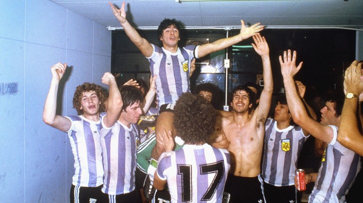 1977年にアルゼンチン・ブエノスアイレスにあるスタジアムでマラドーナ氏とチームメイト(写真:Getty Images)