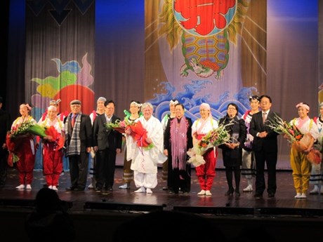 既にお伝えしましたように、ベトナム・日本国交樹立40周年を記念する活動の一環として、今月21日夜ハノイのアウコー(Au Co)劇場ですで、日本の劇団わらび座は公演を行いました。同劇団独特の演目はハノイ市民に深い印象を与えました。これは日本文化に関するベトナム人の理解の深化に寄与するものとなっています.この写真記事で、同劇団の公演の様子をご紹介します。どうぞご覧下さい。