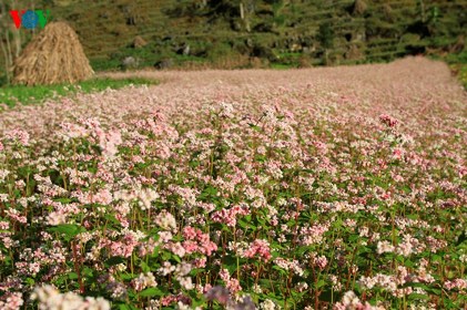ハーザン省のそばの花は10月から11月ごろまで咲き乱れます。そびえたつ岩石の高原の中に広がるピンクのそば畑は観光客をとりこにしています。ハノイの観光客マイフォン( Mai Huong) さんは「この前に、ハザン省には岩石の高原、ルンク旗の塔、マーピレン頂上だけがあると思いましたが、ここに来るとピンクのそばの花の美しさで驚いた」と明らかにし、次のように語りました。