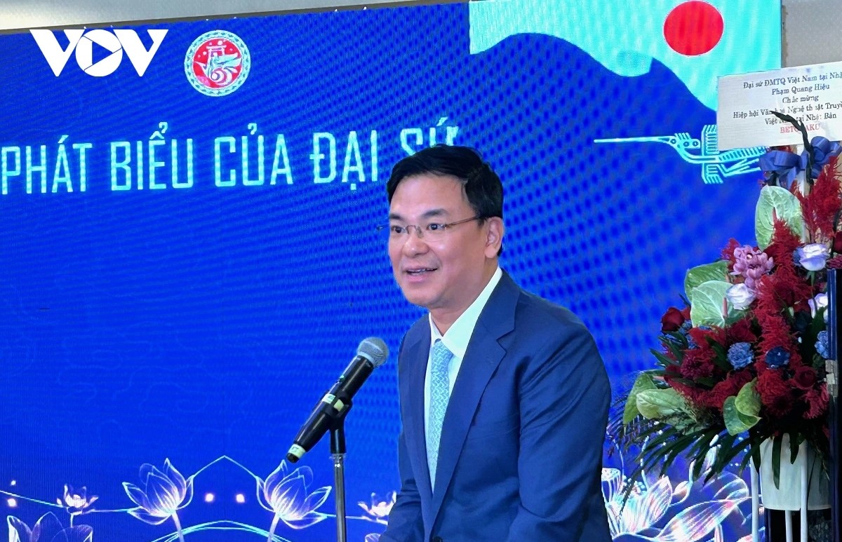 「在日ベトナム伝統文化芸術協会の発足を高く評価しています。この協会の運営を通じて、日本人に対するベトナム文化の素晴らしい価値を広めるだけでなく、ベトナム人が日本のユニークな伝統文化を受け入れることができるようになります。今後、この協会の活動を通じて、日本に在住しているベトナム人共同体の団結精神を高めるようになることを望んでいます」
