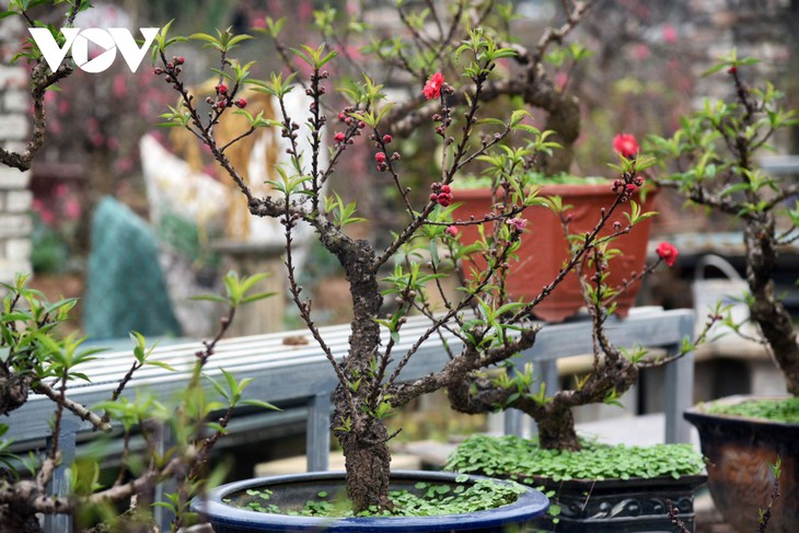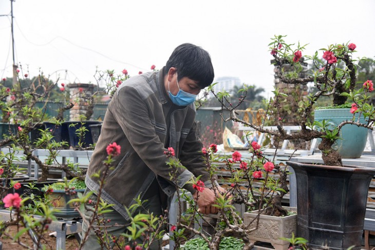 | 春が来て、ハノイ市民はテイホ区ニャッタン花村にやってきて、桃の花を買う |