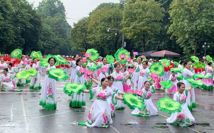 | 「タップムオイのハスの花」と題するパフォーマンス(写真:hanoimoi.com.vn) |