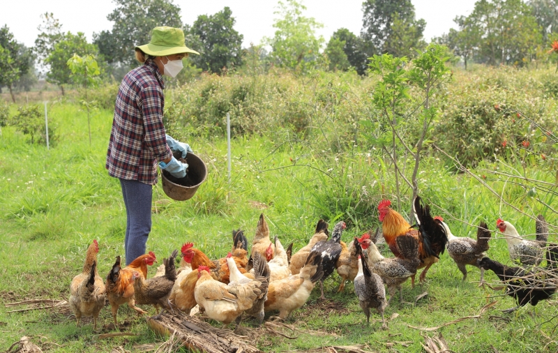 ブオンさんによりますと、毎年、およそ2.5トンの鶏、4トンの魚のほか、多くの農産物を出荷しているそうです。ブオンさんは次のように明らかにしました。