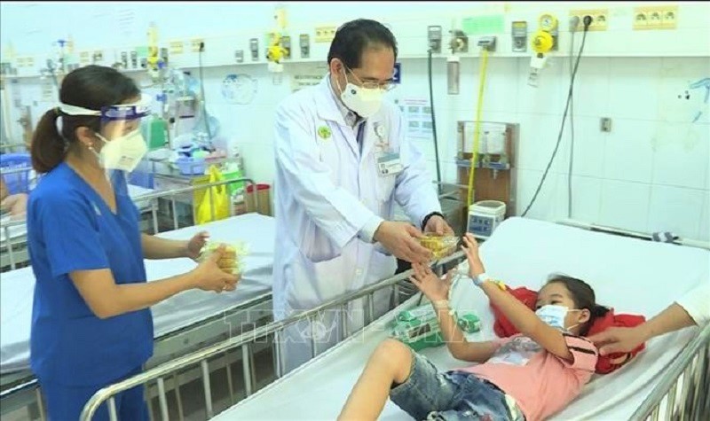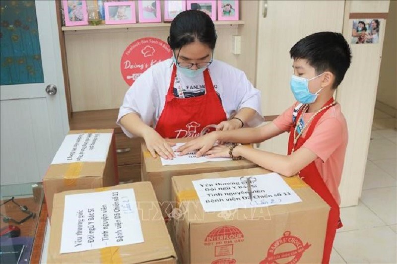 | 最前線に立っている医療従事者や、子どもの患者らへの月餅を作る子どもたち(写真:Quang Châu/TTXVN) |