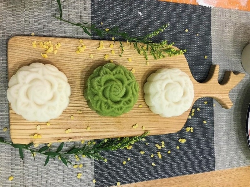| 紫芋や、緑豆、ココナッツミルクなどから作られる月餅(写真:VOV5) |