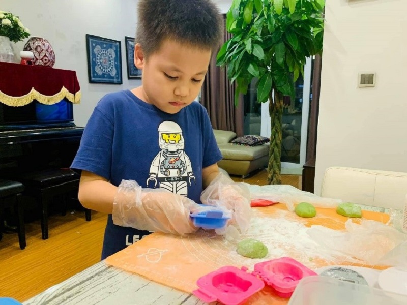 | 月餅を作る子ども(写真:Thu Hà/VOV) |