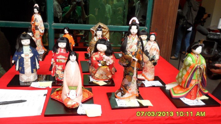「日本人形の世界」展への来場客は江戸木目込み人形のほか、3月のひな祭りと5月の子供の日に用いられる人形、芸能、歌舞伎など日本の伝統的芸術の人物を模倣した人形や博多人形、古瀬人形などを楽しむことができます。