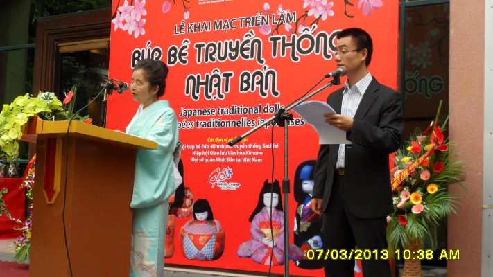 3月7日、ハノイ市内のベトナム女性博物館で、「日本人形の世界」という展示会がオープンしました。これは、日本国際交流基金ベトナム日本文化交流センターとベトナム女性博物館、及び、伝統工芸江戸木目込人形『幸纓会』の共催で行なわれたものです。