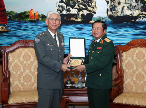 12日午後、ベトナム人民軍の参謀総長であるドー・バ・ティ将軍は日本陸上自衛隊の君塚栄治陸上幕僚長と会見しました。