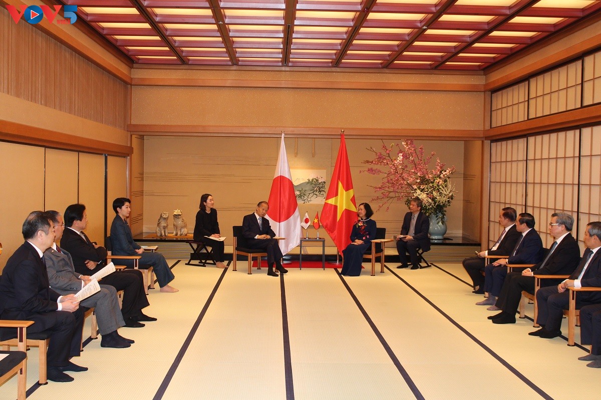 (VOVWORLD) - 2日、東京で、日本を訪問中のベトナム・日本友好議員グループの議長を務めるベトナム共産党中央組織委員会のチュオン・ティ・マイ委員長は自由民主党総裁の岸田 文雄内閣総理大臣、尾辻 秀久参議院議長、額賀 福志郎衆議院議長、志位 和夫日本共産党中央委員会議長とそれぞれ会見しました。