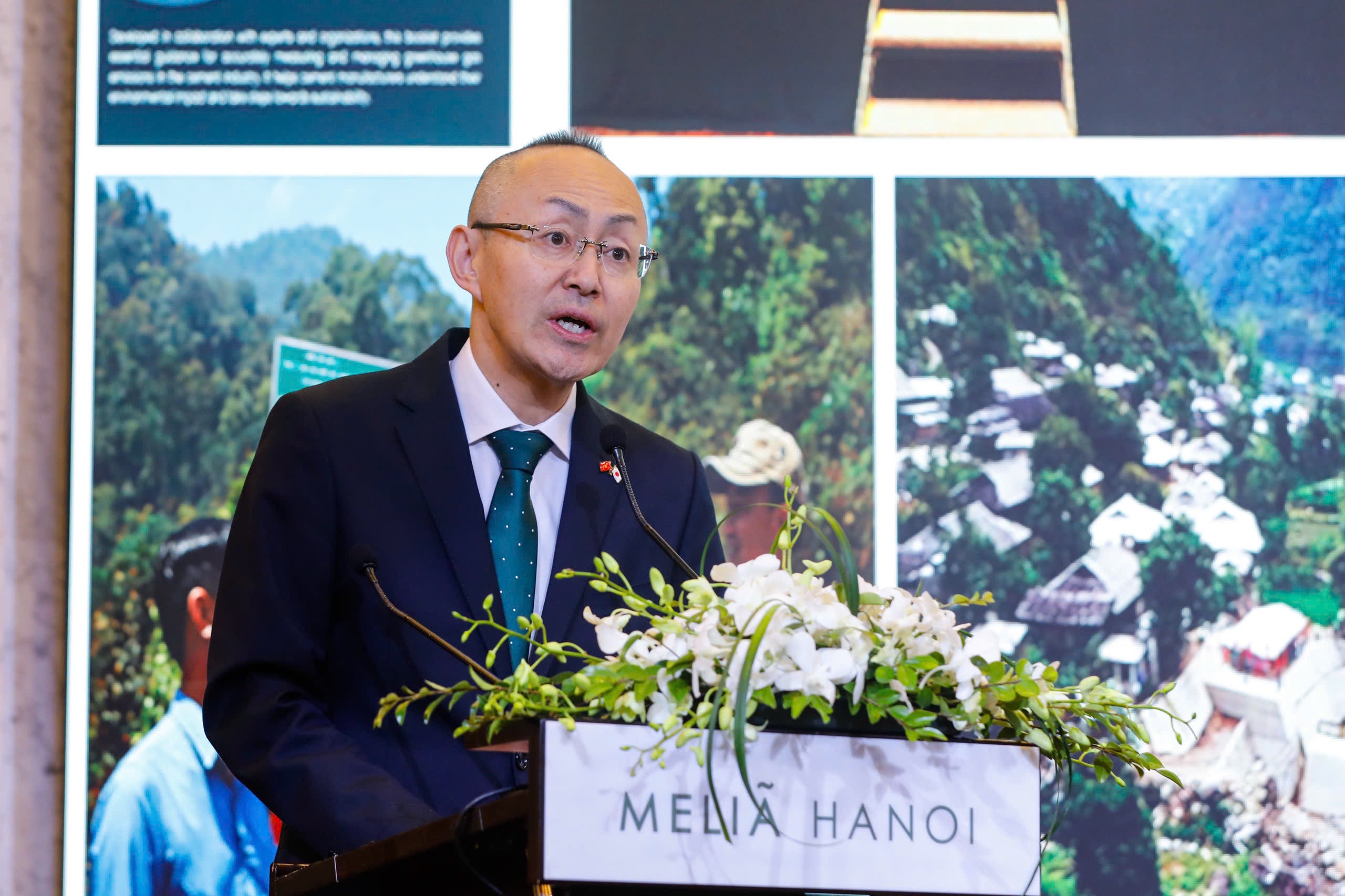 「ベトナムは気候変動の影響を深刻に受ける国の一つです。特に近年、台風や洪水の規模・強度が増し、経済社会に大きな被害をもたらし、人々の暮らしに直接影響しています。専門家の評価では、2030年までに排出削減を進めるための資金需要は約687億5000万米ドルにのぼり、海外パートナー、とりわけ日本に対し、資金・技術・人材の面で協力と支援をお願いしたいとしています」