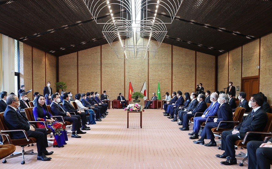 席上、発言に立ったチン首相は、「ベトナムと日本との関係が良好に発展している中で、ベトナムと日本の各企業は、協力の為の大きなチャンスに恵まれている。安定した政治、体制完備、行政改革、人材の質的向上、インフラ整備、さらに、ベトナムの人々が困難な状態にあっても団結し合い、困難を乗り越えると同時に、常にお客さんに対する暖かいおもてなしで迎えるということは、ベトナムへの投資誘致に利点である」と明らかにしました。