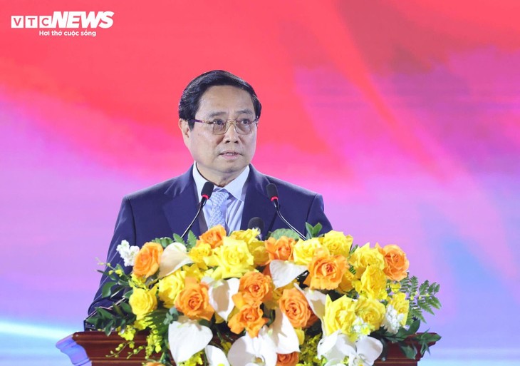 | 開会演説でファム・ミン・チン首相は、「『独立・自由・幸福の80年の歩み』展は、ベトナム革命80年の栄光と誇りの歴史における全党・全民・全軍の貢献と献身を深く映し出す結晶であり、党関連中央レベルの機関、国会機関、各レベルの党・行政、地方、そして経済界が積極的かつ創造的に参画して実現したもの」と発信 |